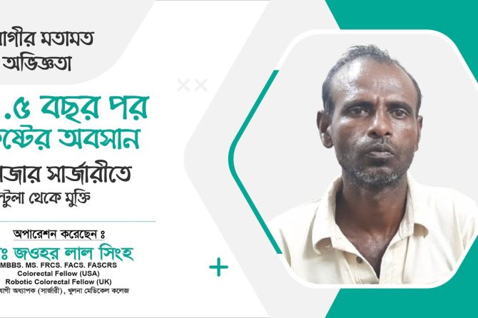 এক বন্ধুর পরামর্শে তিনি খুলনা গ্যাস্ট্রো কলোরেক্টাল সেন্টারে (KGCRC) আসেন এবং